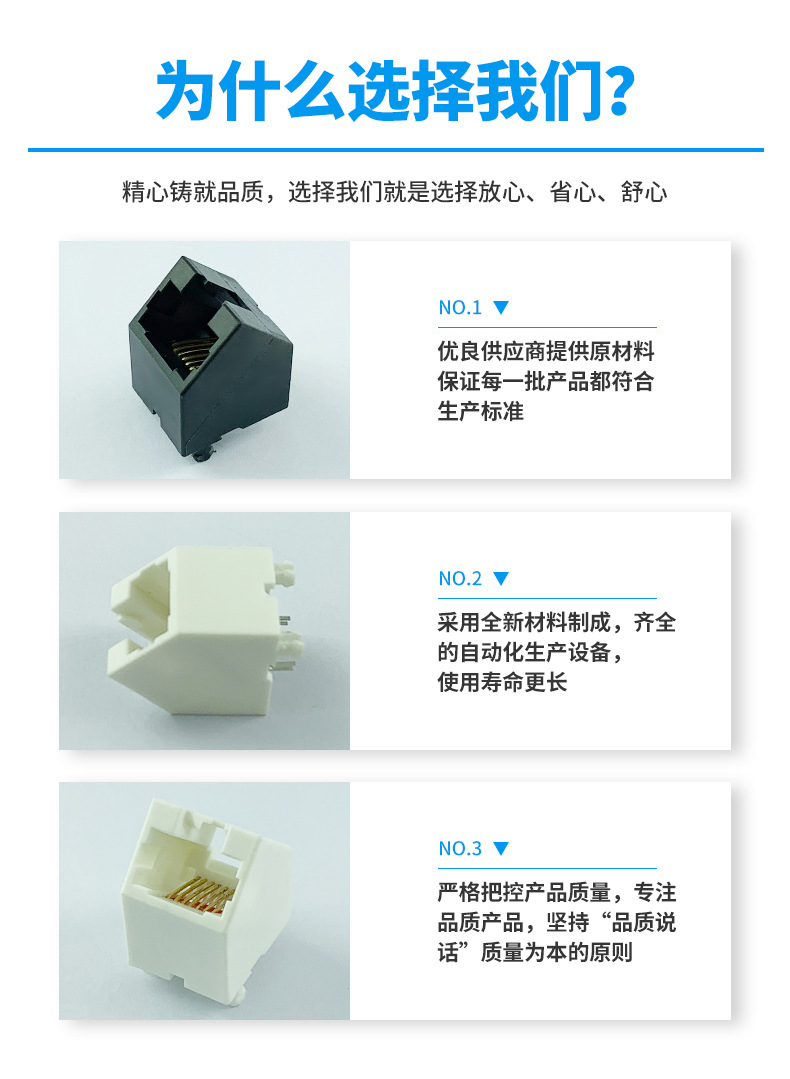 本公司提供優(yōu)良的RJ11、RJ12電話插接件、RJ45網(wǎng)絡(luò)插接件,耐環(huán)境RJ45防水連接器,防水電連接器及其它精密連接器,產(chǎn)品應(yīng)用于網(wǎng)絡(luò)通訊(電腦主板,網(wǎng)絡(luò)交換機,路由器,電信設(shè)備)、惡劣環(huán)境下數(shù)據(jù)傳輸與控制及電源信號傳輸與控制(戶外LED顯示屏、機器控制、工業(yè)程序控制等)