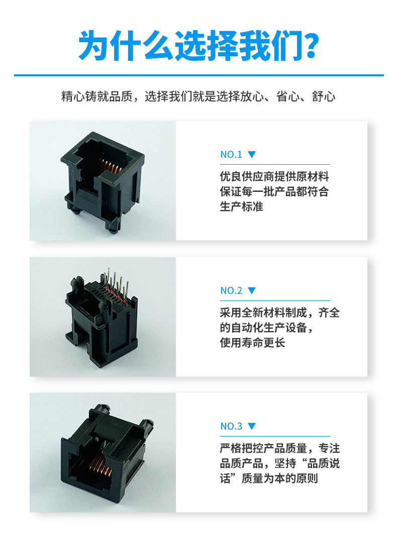 本公司提供優(yōu)良的RJ11、RJ12電話插接件、RJ45網(wǎng)絡(luò)插接件,耐環(huán)境RJ45防水連接器,防水電連接器及其它精密連接器,產(chǎn)品應(yīng)用于網(wǎng)絡(luò)通訊(電腦主板,網(wǎng)絡(luò)交換機(jī),路由器,電信設(shè)備)、惡劣環(huán)境下數(shù)據(jù)傳輸與控制及電源信號(hào)傳輸與控制(戶外LED顯示屏、機(jī)器控制、工業(yè)程序控制等)
